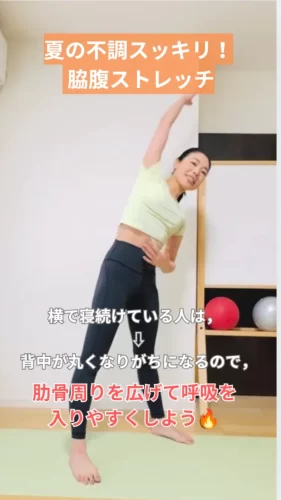 このエクササイズで肋骨周りの筋肉がストレッチされ、呼吸が入りやすくなりますよ✨