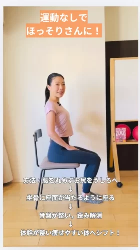 このように骨盤を立てて座ることで、骨盤が整い、歪みや左右差も解消✨