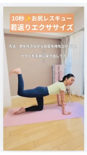 そんな方におすすめなのが、四つ足で行うヒップアップエクササイズです。自重でもしっかり効かせることができ、特別な道具も必要ありません。