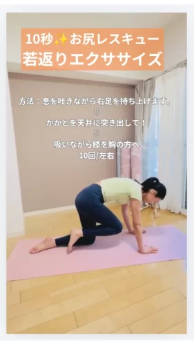 四つ足のエクササイズは、1日片足10回程度でも変化を感じられます。